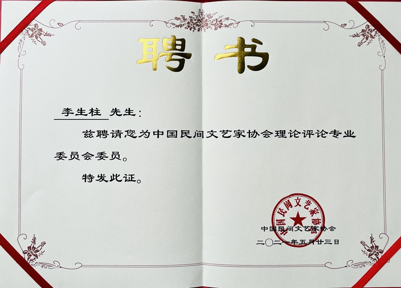 李生柱受聘为中国民间文艺家协会理论评论专业委员会委员